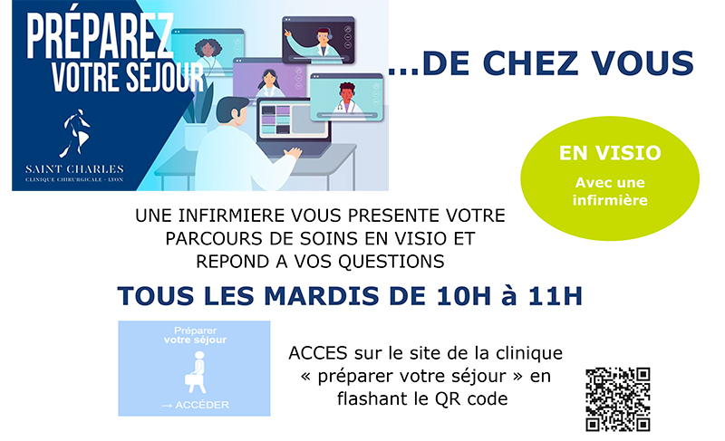 Une réunion d’informations interactive en visio animée par une infirmière sur le parcours soins et la préparation du séjour est organisée tous les mardis de 10h à 11h. A cette occasion, les patients seront renseignés sur leur parcours de soins (hors données médicales) et sur les démarches à effectuer.