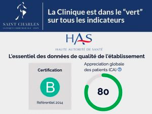 La Clinique Saint Charles se positionne très bien avec une appréciation globale des patients de